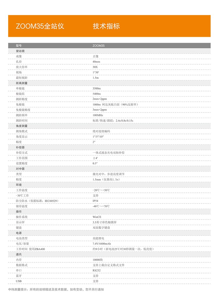 中緯ZOOM35系列全站儀是中緯高端全站儀。秉承歐洲精湛制造工藝和理念,采用瑞士精密制造技術(shù),具有高品質(zhì)、高精度、高穩(wěn)定性的特色。測角精度優(yōu)于2″,棱鏡測距精度優(yōu)于2mm+2ppm,免棱鏡測程最高可達(dá)...