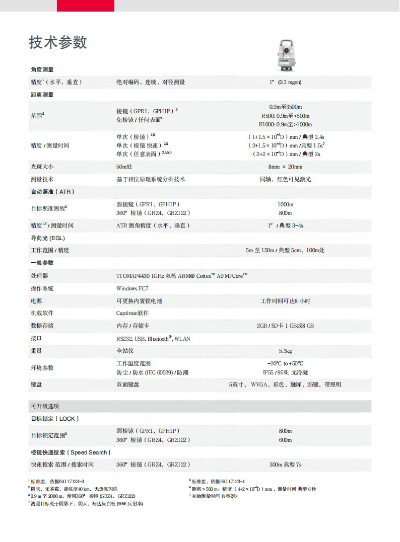 徠卡測量系統TS09plus系列全站儀是集瑞士光學與機械制造技術工藝和中國測繪工作需求的一款全新產品。TS09plus采用彩色液晶觸摸屏幕并標配導向光功能,使用便捷高效;TS09plusL采用了...